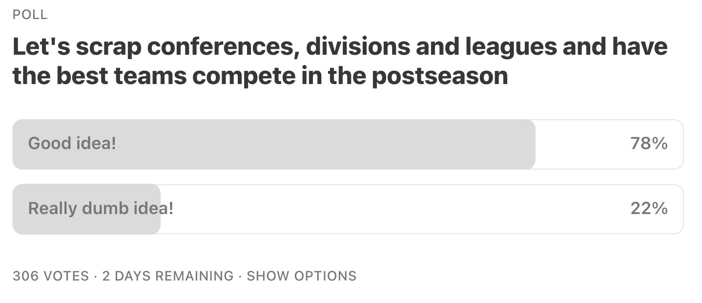 Readers agree! Scrap conferences, divisions and leagues in sports