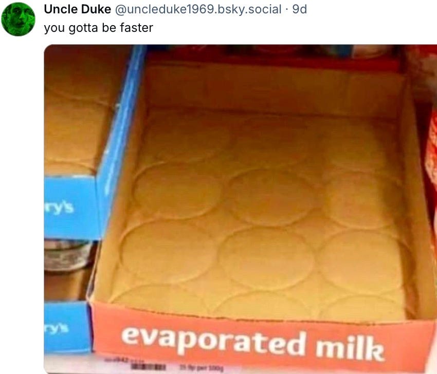 In Tuesday’s paid-subscriber editions, I present my favorite tweets that rely on visual humor. Subscribers then vote for their favorite. Here is the winner from this week’s contest: