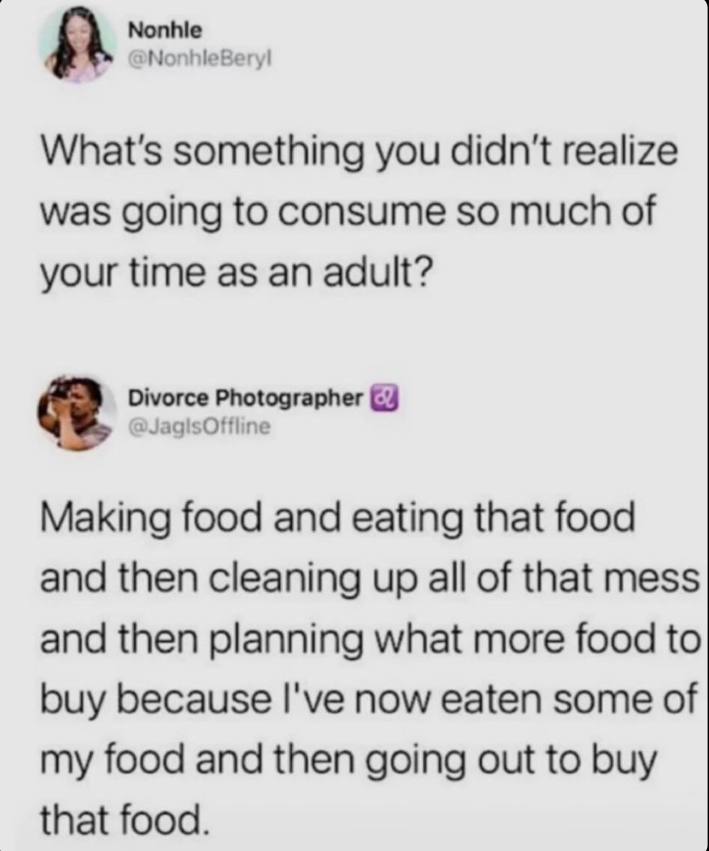Sorry I didn’t make mashed potatoes. The potato masher was stopping me from opening the drawer. — @sixfootcandy