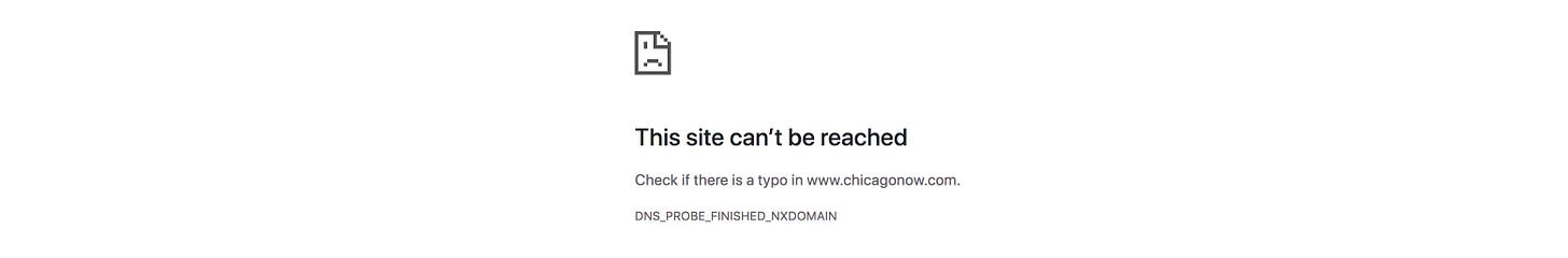 But I was surprised at how it was done — abruptly, with no notice to the writers who might have wanted to save their posts and not even a gracious “so long and thanks” on the disabled home page. Here’s what visitors to ChicagoNow.com see today: