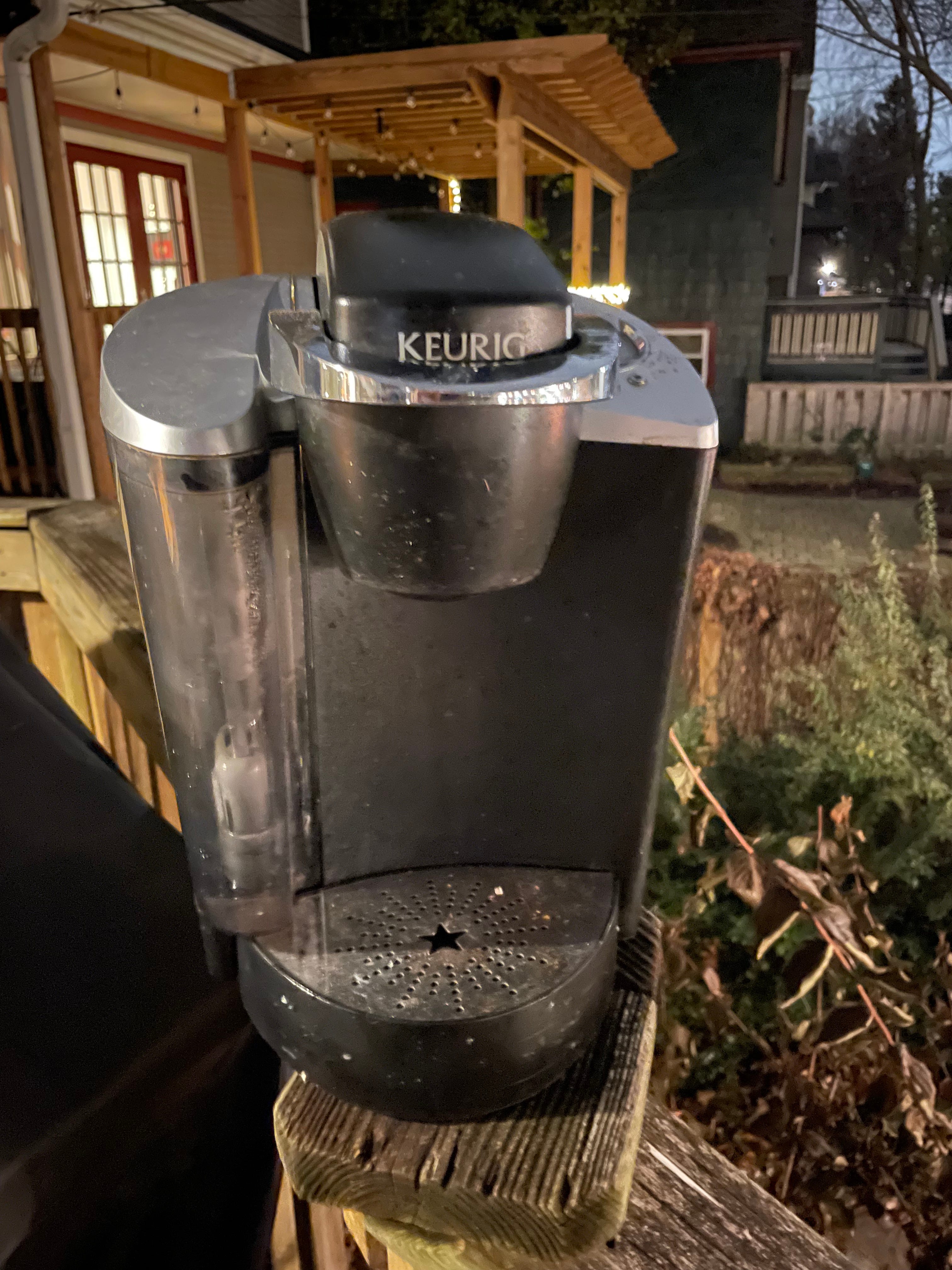 So maybe, just maybe, a little girl rescued my Keurig from the alley — somebody did! — and is now somehow delighting in it, making pretend cups of not-quite-hot-enough coffee for her dolls, perhaps.