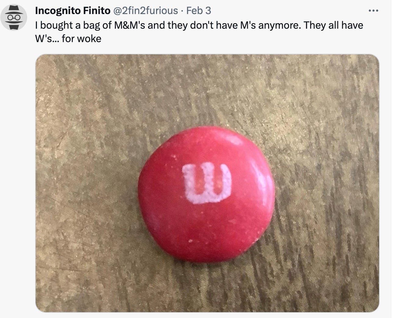 That M&Ms photo reminds me of the old blonde joke of the blonde fired from the M&Ms factory, because she kept rejected all the "Ws"