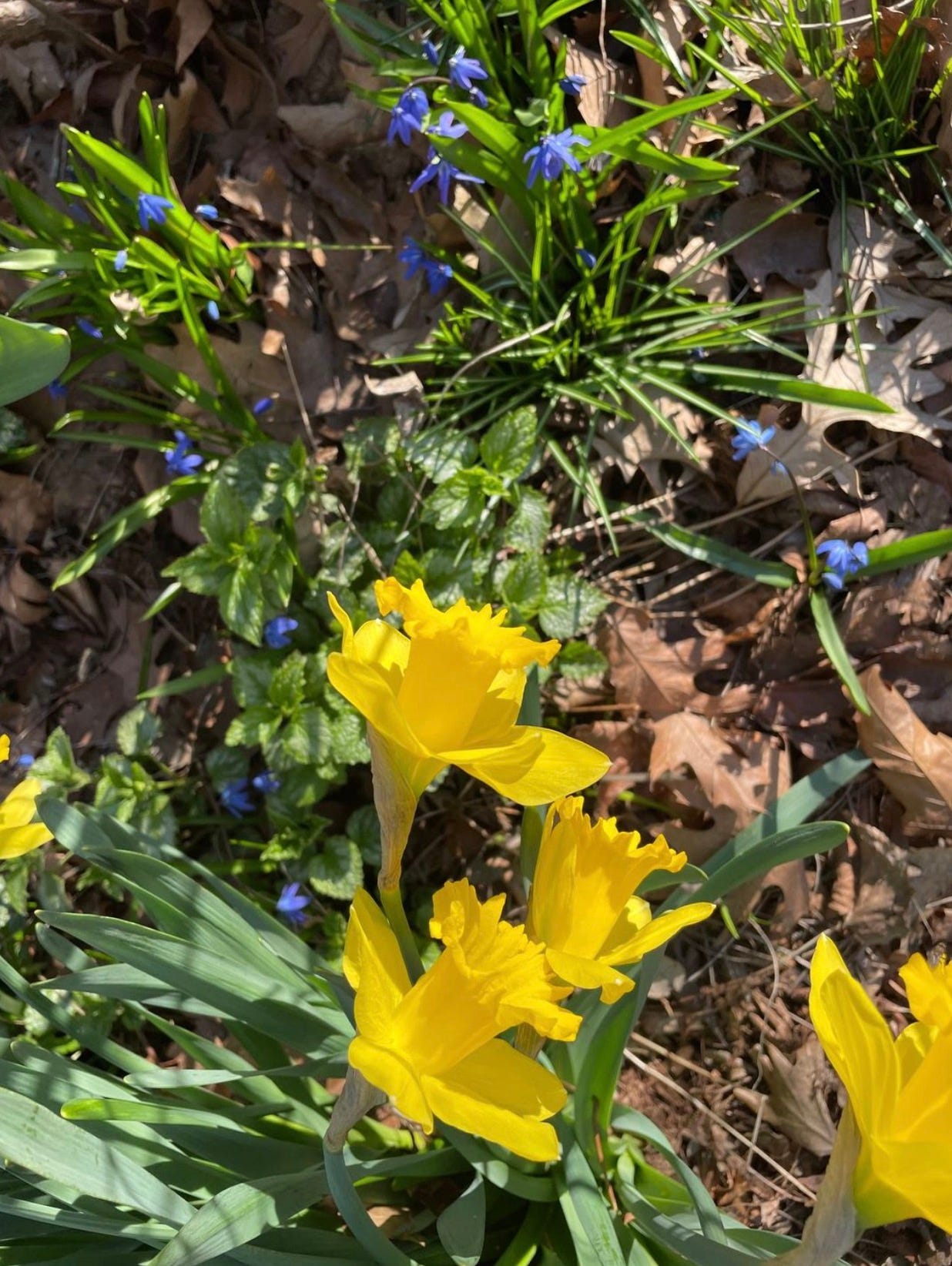 The photo is of some flowers I saw poking out of the ground this morning. The colors of Ukraine. — Mary Schmich