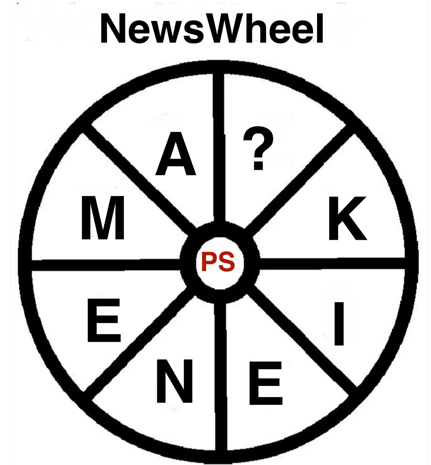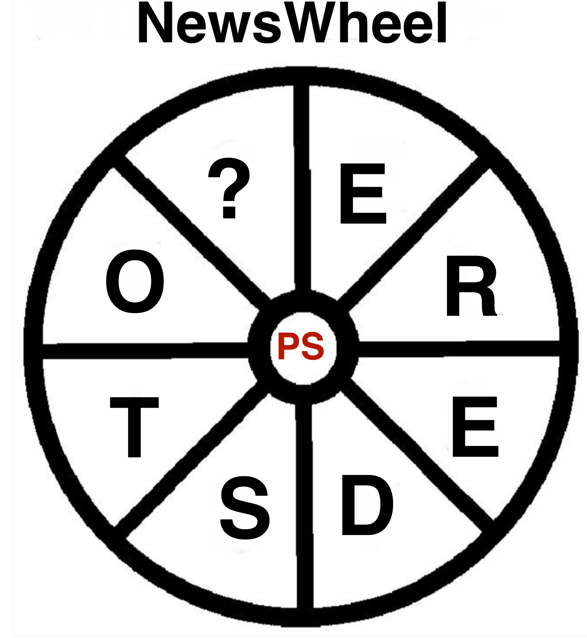 Inspired by the WordWheel puzzle in the Monday-Friday Chicago Tribune and other papers, this puzzle asks you to identify the missing letter that will make a word or words — possibly proper nouns; reading either clockwise or counterclockwise — related to a story in the news or other current event. The answer is at the bottom of the newsletter.