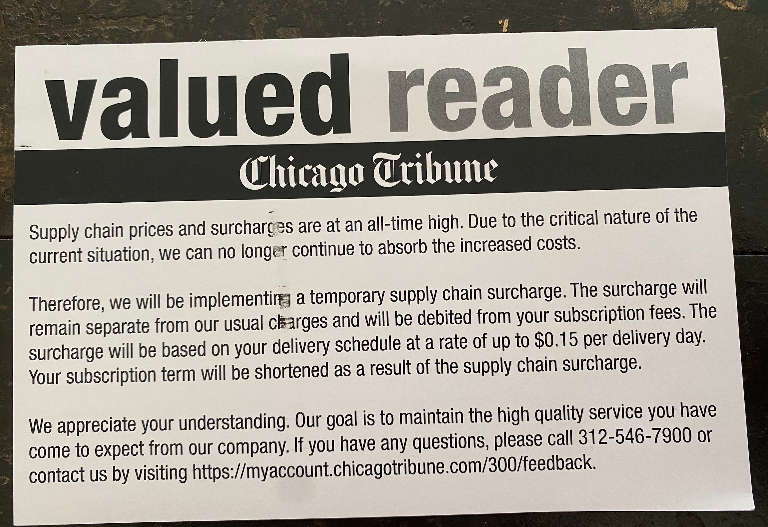 Margaret B. — This came in the mail today, and we’re finding it harder and harder to justify our Tribune subscription: