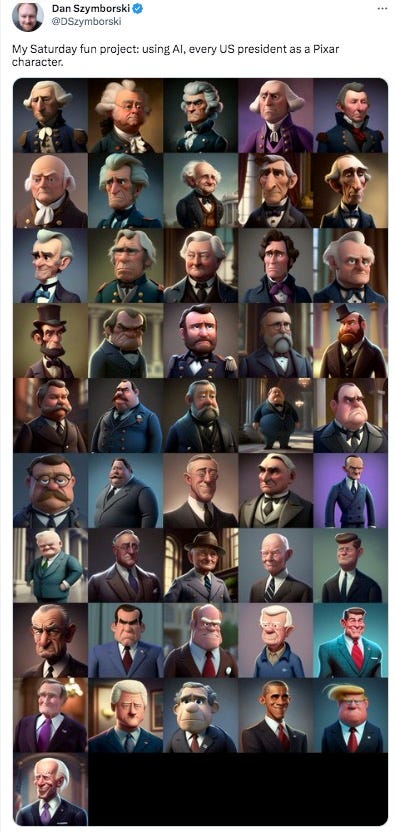 The Pixar presidents look like cast of great caper movie, with Gerald Ford as the big boss and George W. Bush as his idiot henchman.