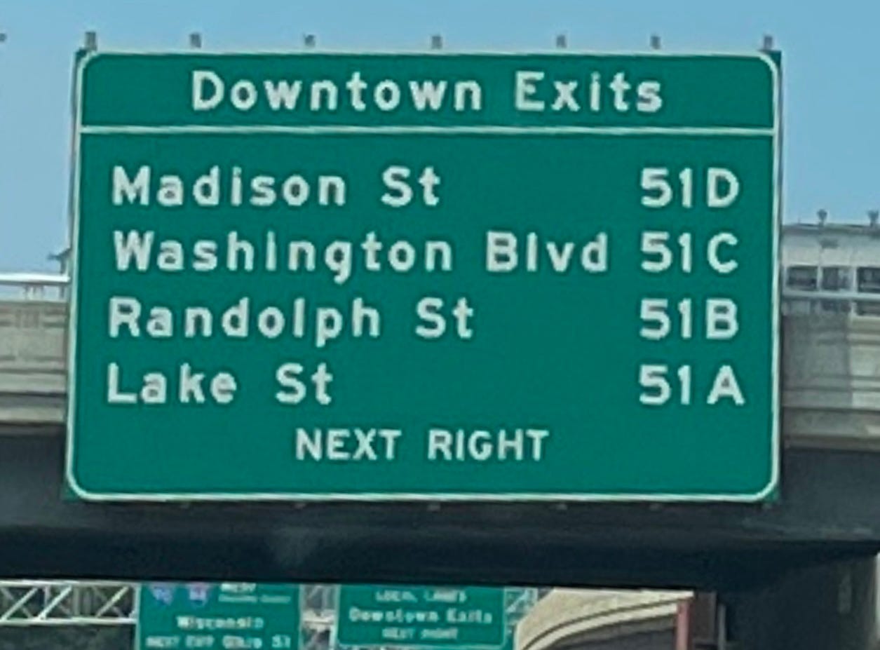 Headed north on the Dan Ryan Expressway through downtown as you approach the Jane Byrne Interchange, when the traffic is heavy on I-90/94, follow the “downtown exits” sign (51 A through D), even if you’re not going downtown.