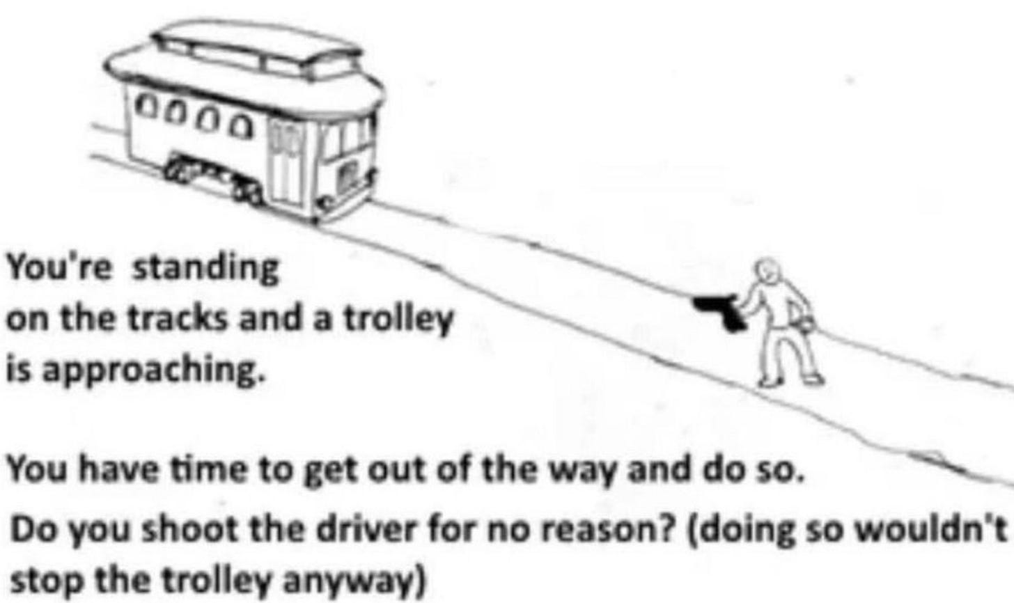 And how was shooting the driver going to prevent that? Those who are minimizing the horror of this incident have claimed that Ross was firing in self-defense, but killing a driver behind the wheel of a car that you think is about to run you over would not instantly stop the car and only make it more likely that the wounded or dead driver, foot on gas, would careen down the road (as Good’s SUV did) and strike innocent bystanders (as Good’s SUV thankfully did not).