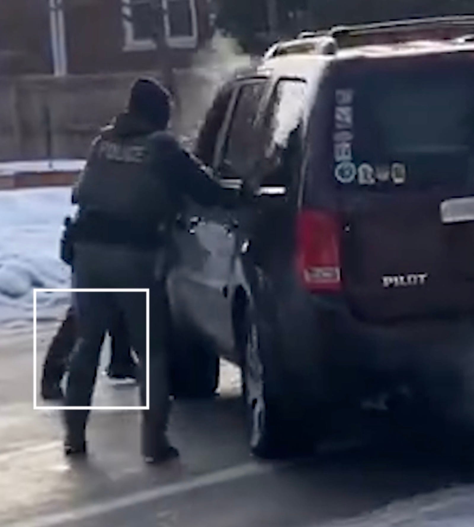 President Trump and others said the federal agent was hit by the SUV, often pointing to another video filmed from a different angle. And it’s true that at this moment, in (the) grainy, low-resolution footage, it does look like the agent is being struck by the SUV. But when we synchronize it with the first clip, we can see the agent is not being run over. In fact, his feet are positioned away from the SUV.