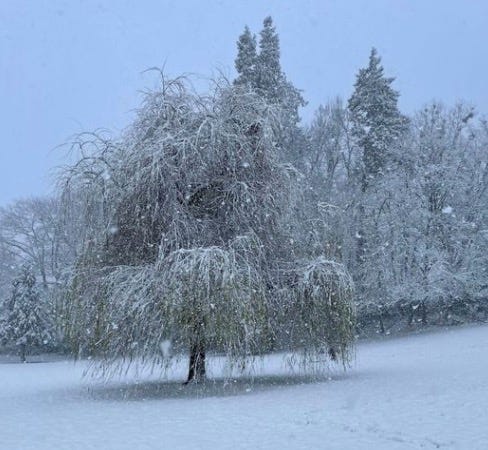 So here's a poem I suddenly remembered today, with a photo I took of the snow in Eugene, Oregon, where it's been snowing like crazy for two days.