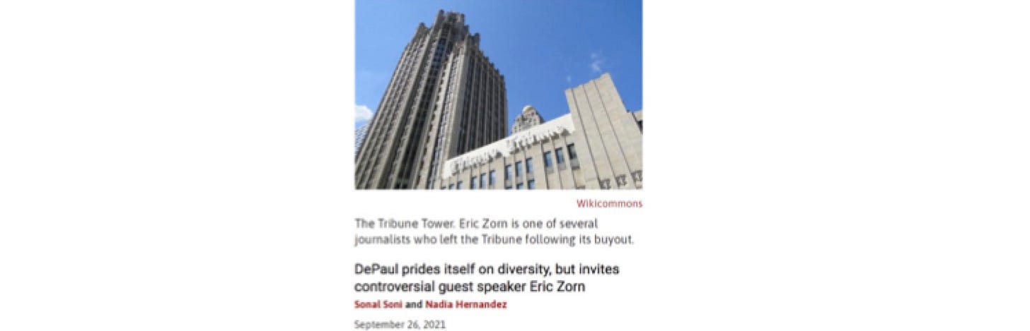 On Sunday, the DePaulia, a student publication at DePaul, posted a commentary by two news editors under the headline “DePaul prides itself on diversity, but invites controversial guest speaker Eric Zorn.” The authors accused me of expressing “racist views about Latinx youth and great insensitivity towards police brutality” in my April 6 Chicago Tribune column “Let’s wait before turning slain 13-year-old Adam Toledo into a martyr.” Their column did not link to nor directly quote from my column in order to substantiate this false and toxic charge.
