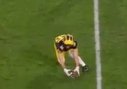 Thaw (and Harbaugh fils) lucked out. After the ball slipped out of Thaw’s grasp it somehow didn’t wobble into the end zone, where he would have been tackled for a safety and Michigan would have lost the game 22-20, and somehow didn’t end up in Alabama’s possession for a chip-shot field goal to win 23-20. Thaw was able to pick up the ball inside the one yard line and hang onto it while being swarmed by two Alabama tacklers.