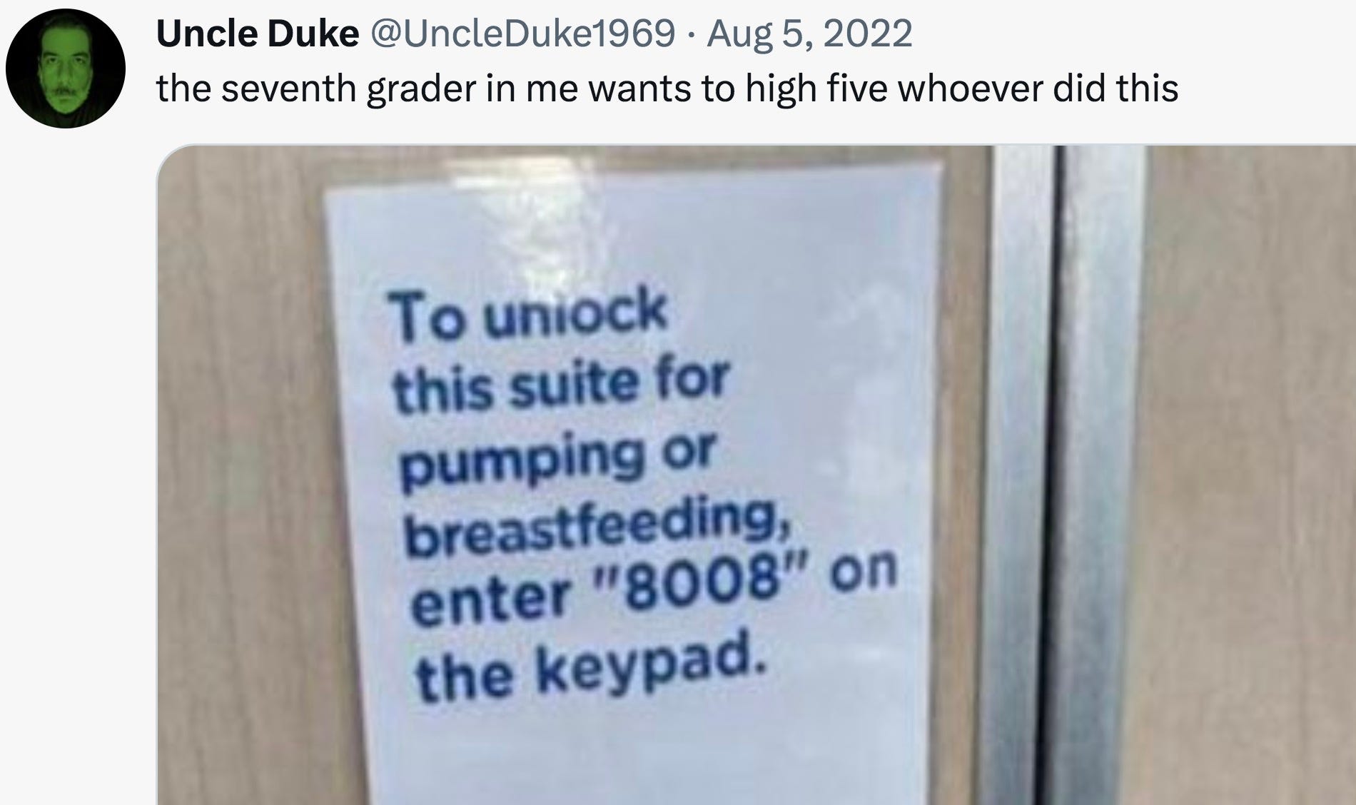 In Tuesday’s paid-subscriber editions, I present my favorite tweets that rely on visual humor and so can’t be included in the classic Tweet of the Week contest in which the template for the poll does not allow the use of images. Subscribers vote for their favorite, and I post the winner here every Thursday: