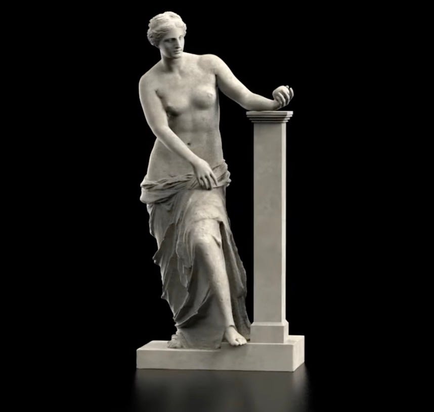 “A Keith Haring Painting ‘Completed’ Using A.I. Generates Backlash.” Artnet reports on the art community’s response to the use of artificial intelligence to complete a painting by an artist who died of HIV that he deliberately left unfinished to suggest the ravages of AIDS. It inspired me to look for renditions of Venus de Milo with arms: