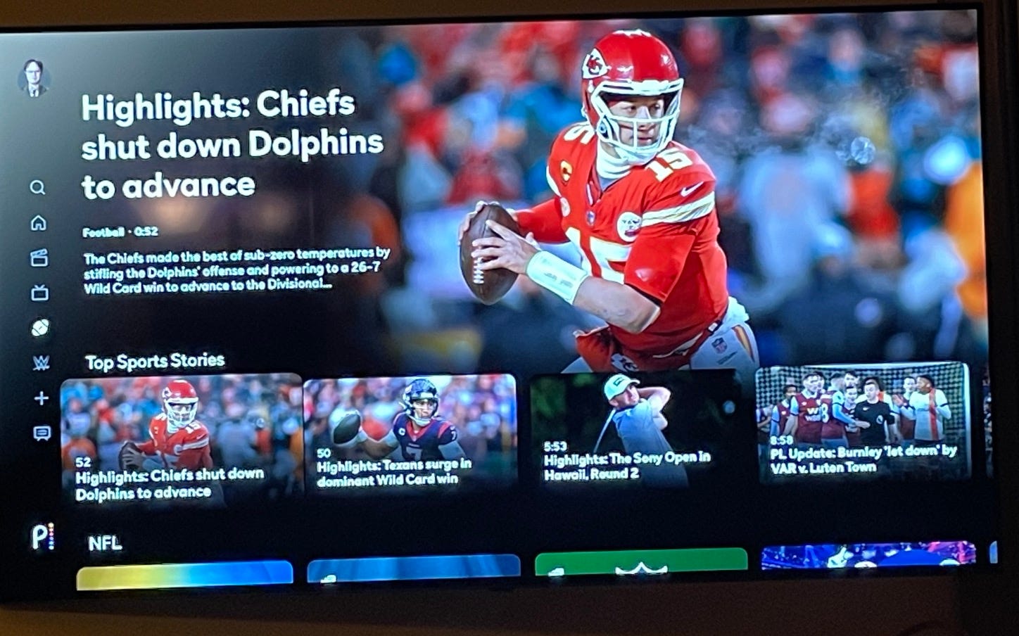 Saturday night, we went to a dinner party, and when we got home I thought I'd zip through a recording of the Kansas City Chiefs vs. Miami Dolphins wild-card playoff game, which by then was long over. Normally I would have saved the game on the DVR, but because it was available only on NBC’s Peacock streaming service, I went to our account to see if I could watch it from the beginning.