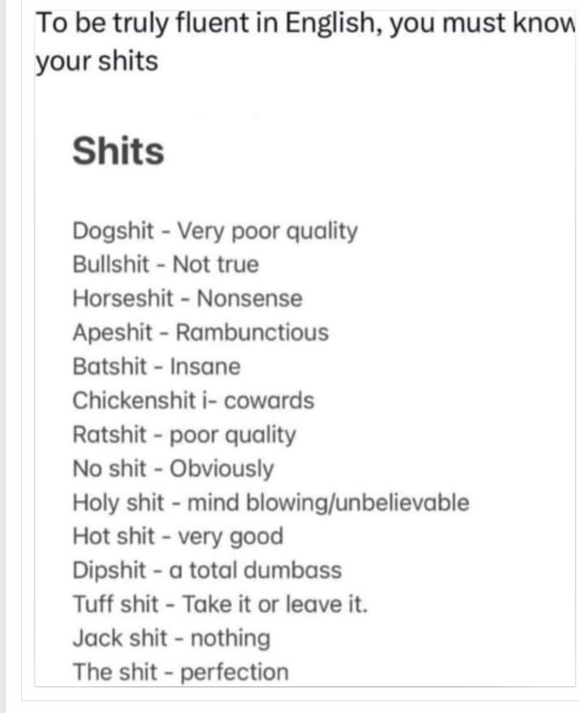 I realize that the “know your shits” image is not really a visual tweet, but it’s too long for Thursday’s written tweet contest and I think it benefits from the visual presentation. If you find it in poor taste, I refer you to the antepenultimate entry on the list.