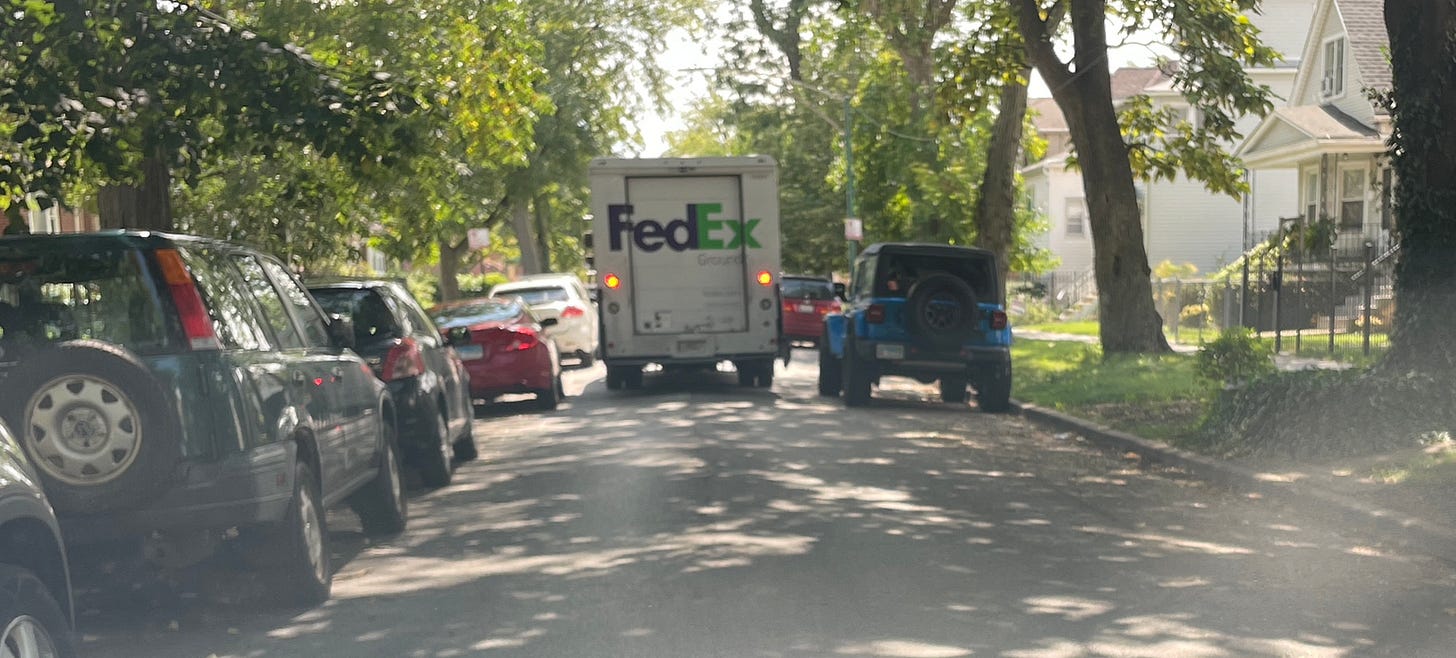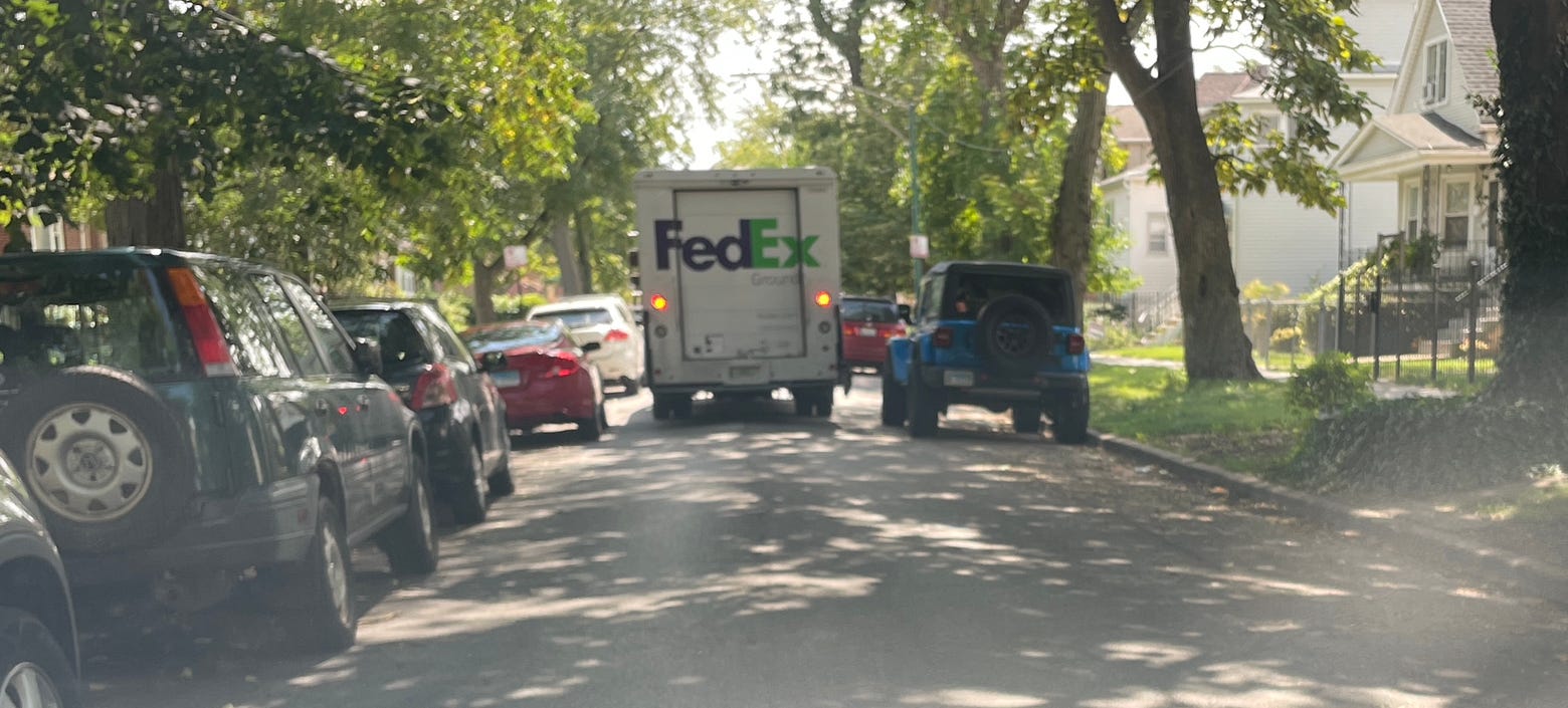 I have a great deal of sympathy for harried drivers for FedEx, UPS, Amazon, the U.S. Postal Service and other package-delivery services, but too often I’ll come up behind them on narrow Chicago streets where they have opted not to pull over to the side of a few doors down from their destination, but instead to stop in the middle of the street at the exact address.