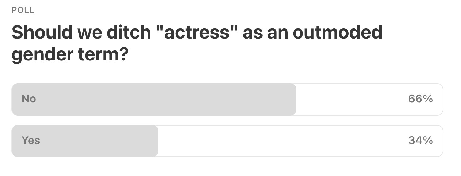 There was a small kerfuffle recently in the comment threads over the word “actress,” which is one of the few surviving feminized terms, most of which are now out of favor — stewardess, waitress, aviatrix, comedienne, salesgirl and so on. My guess is we still use it largely because best actress and best supporting actress are Academy Award categories. Jurors?