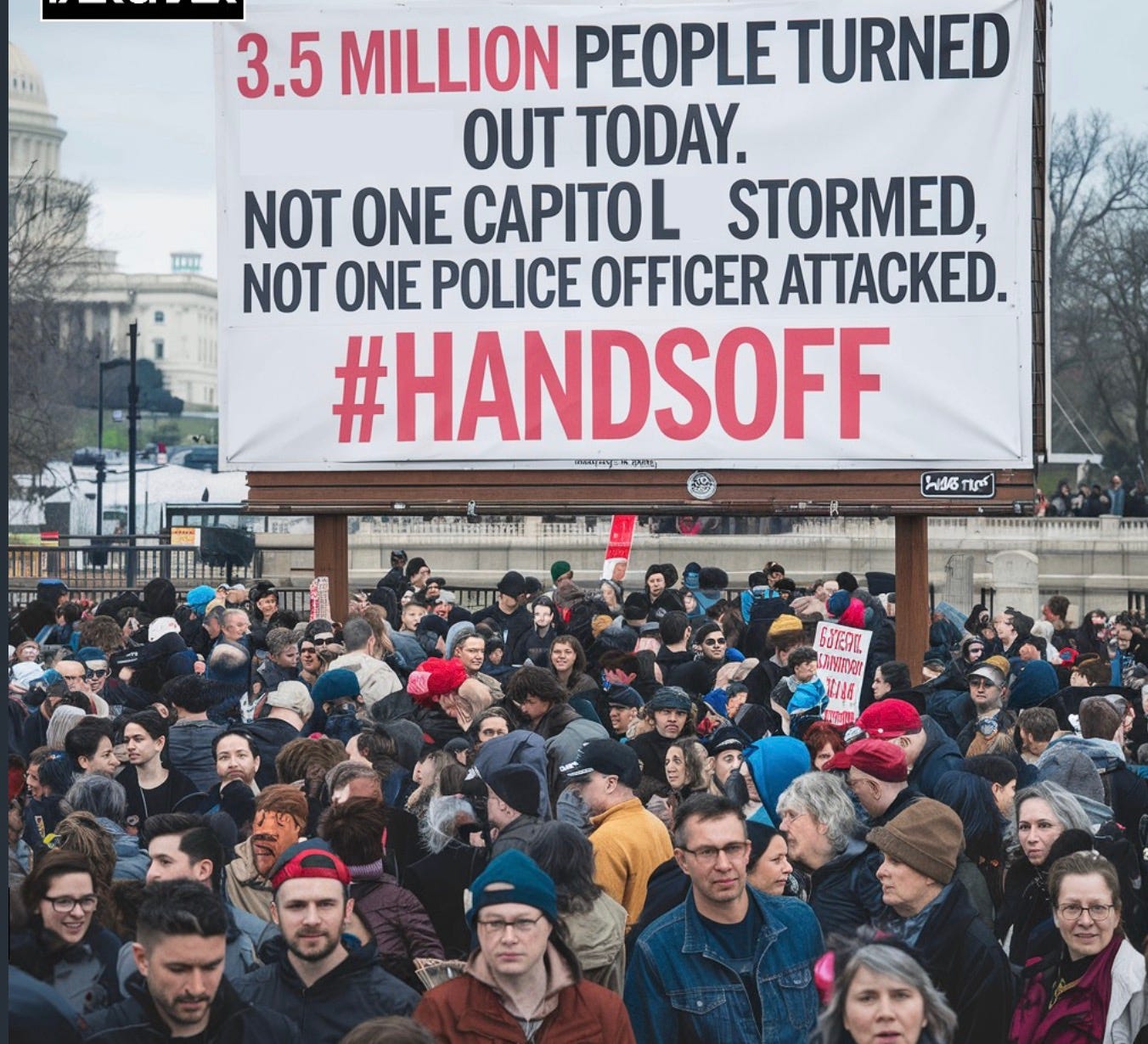 A highlight for me at Saturday’s “Hands Off!” rally and protest march in downtown Chicago was the small group of protesters we encountered who were singing Woody Guthrie’s 1944 anthem, “All You Fascists Bound to Lose.” Guthrie’s original recording is here, and many cover versions are here, but I’m partial to this 2020 version from Rhiannon Giddens and the Resistance Revival Chorus: