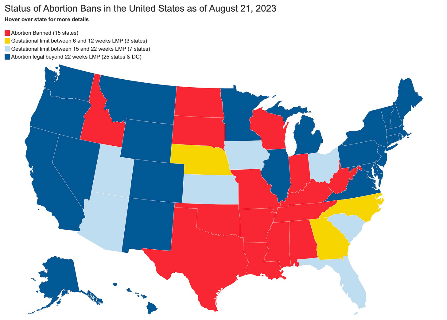Yet conservative-leaning states are going all in with bans and restrictions far greater than what was allowed during the Roe v. Wade era, when abortion was commonly available at up to 24 weeks gestation.