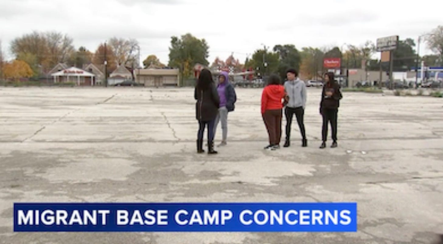 Busted! Capitol Fax’s Rich Miller takes to task TV stations for amplifying “protests” that are often just gatherings of a handful of people, such as this meeting of five concerned Morgan Park-area citizens. They were “making their voices heard” in objecting to a migrant camp in a parking lot, according to the ABC-7 report, but only because TV stations lured to the site had airtime to fill.