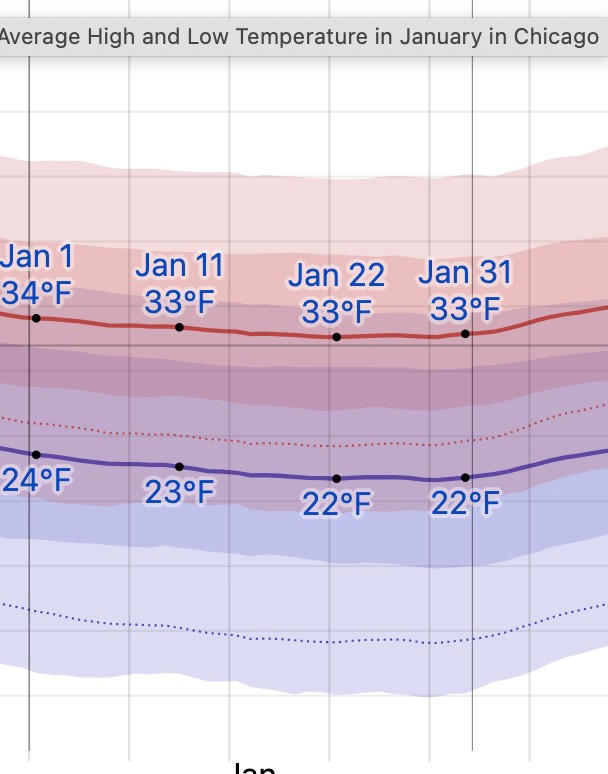 And the thing is, it wasn’t even really that cold Monday night. Sure, it felt cold to all of us — the first freeze of the winter, 12 days later than the average first freeze — but the average low in the city is going to be around 22 degrees in January —