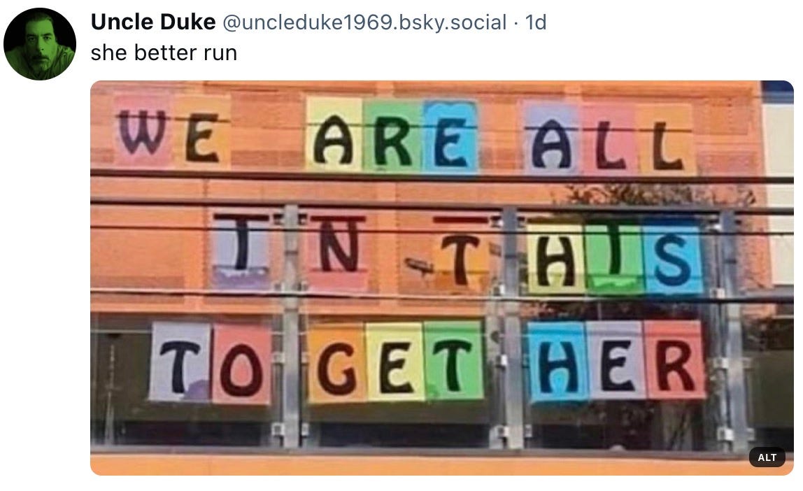 Thanks for the diversion of the visual and verbal jokes, but the monsters still haunt me. trump is on the phone with his buddy Vlad today to discuss the carve up and betrayal of Ukraine, Netanyahu is bombing the bejeezus out of Gaza, and the racist Afrikaner is wrecking the US government. No time to list the other monsters doing evil things.