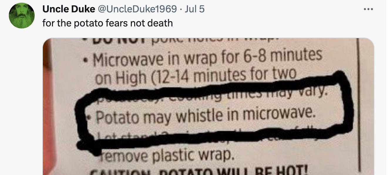 In Tuesday’s paid-subscriber editions, I present my favorite tweets that rely on visual humor. Subscribers vote for their favorite, and I post the winner here every Thursday: