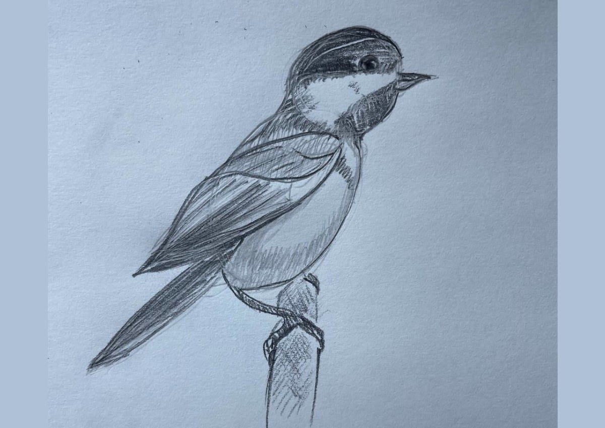 Here is the link, but if you don't have a Times subscription and are eager to draw a bird — as we all should be! — here's how. It's really fun and easy! All you need is a pencil.