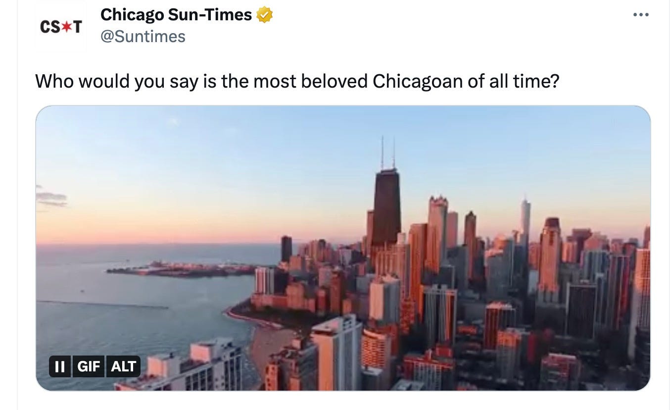 “Beloved” is such a high bar. It implies not simply admiration or respect, but affection. The Sun-Times is asking for reader nominations.