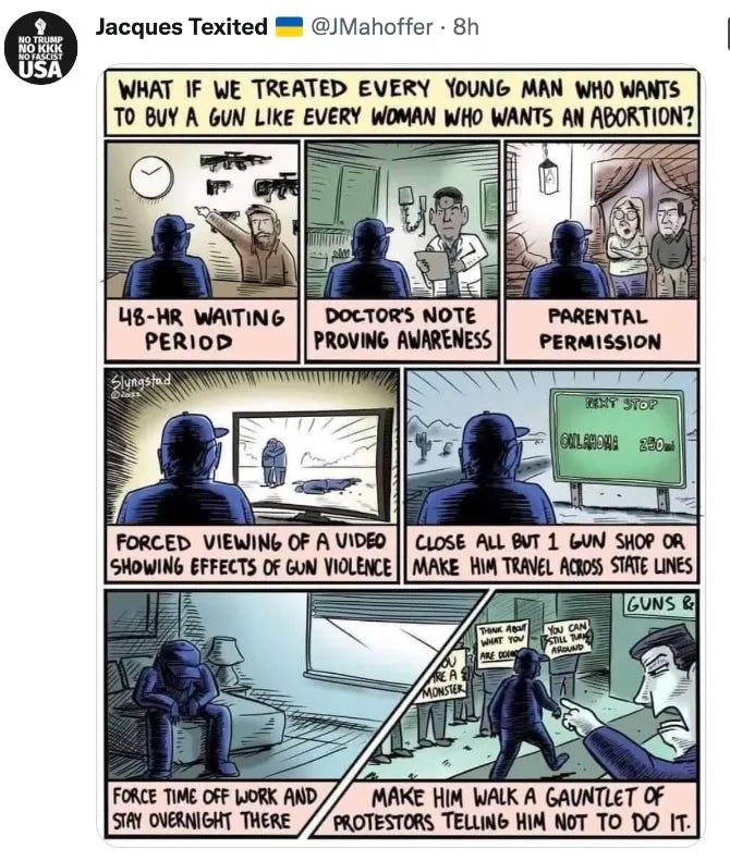 Don B. — One of the finalists in the visual Tweet Madness poll — the one on abortion clinics and gun shops (see below)— is simply a cartoon posted exactly as it was meant to be published. Is that really a tweet?