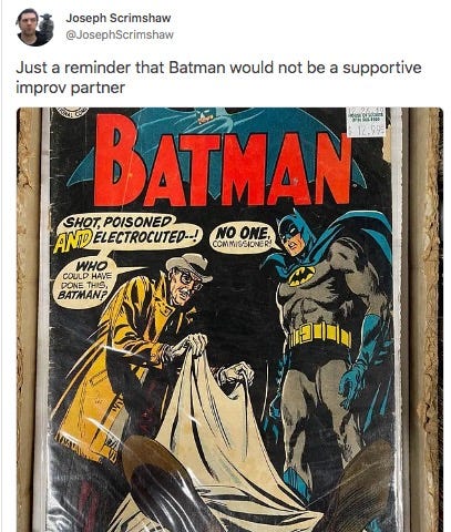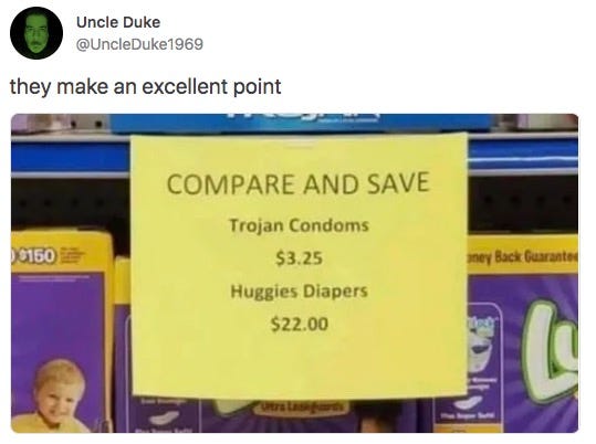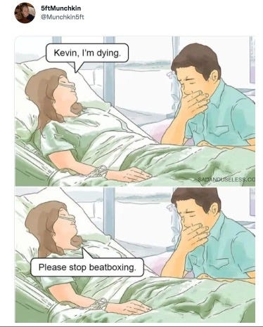 I often run across tweets that rely on visual humor and so can’t be included in the Tweet of the Week contest (the template I use for that poll does not allow me to include images). Over the next few weeks I’m going to pit weekly winners from the past year against each other in a set of “brackets.” Today concludes the opening bracket. (See the first five rounds here)