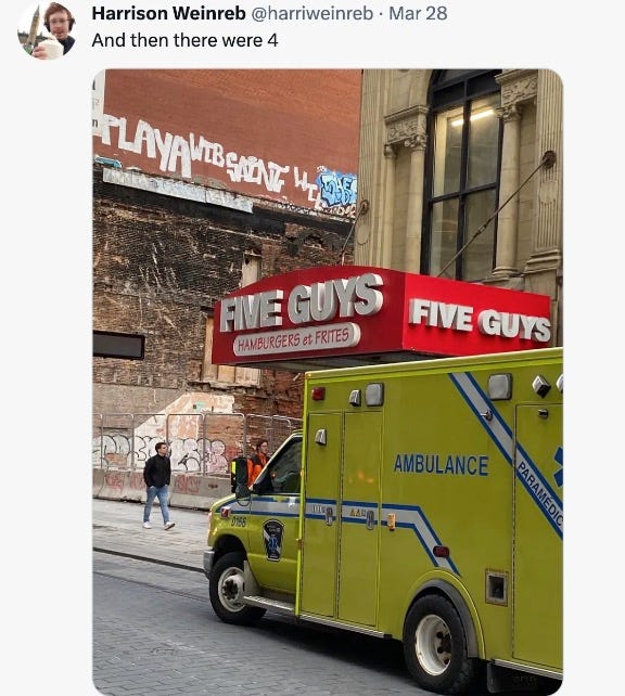 My readership is also responding most positively to @fozzie4prez’s tweet, “At the grocery store some old lady seemed like she was hitting on me. Turns out we went to school together.” But there’s still time for you to vote in that poll.