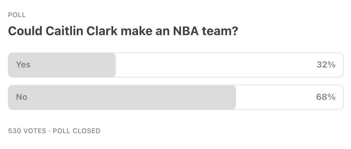 I’m surprised that roughly 1 out every 3 readers believes that Clark could make an NBA roster. Because there is simply no way she could.