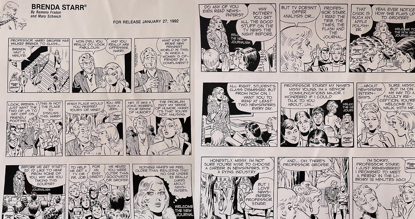 I always read the Brenda Starr strip. I did not know that Mary Schmich was a writer for the strip. Yet another reason to admire her.
