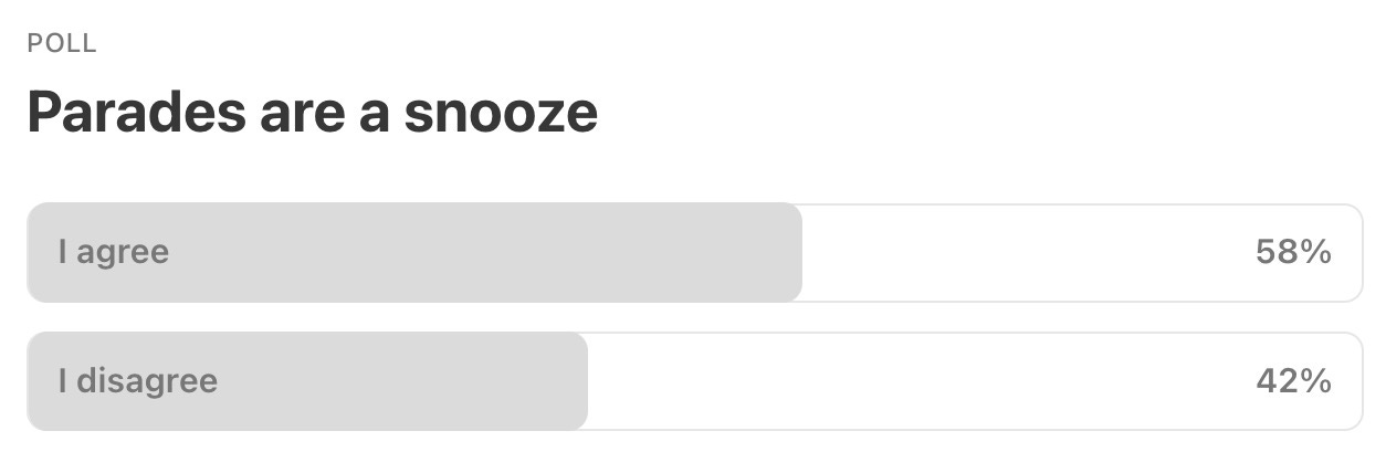 Peter Zackrison — Parades and entertainment value? You miss the main point, it is suppose to be participatory, not “entertain me”.