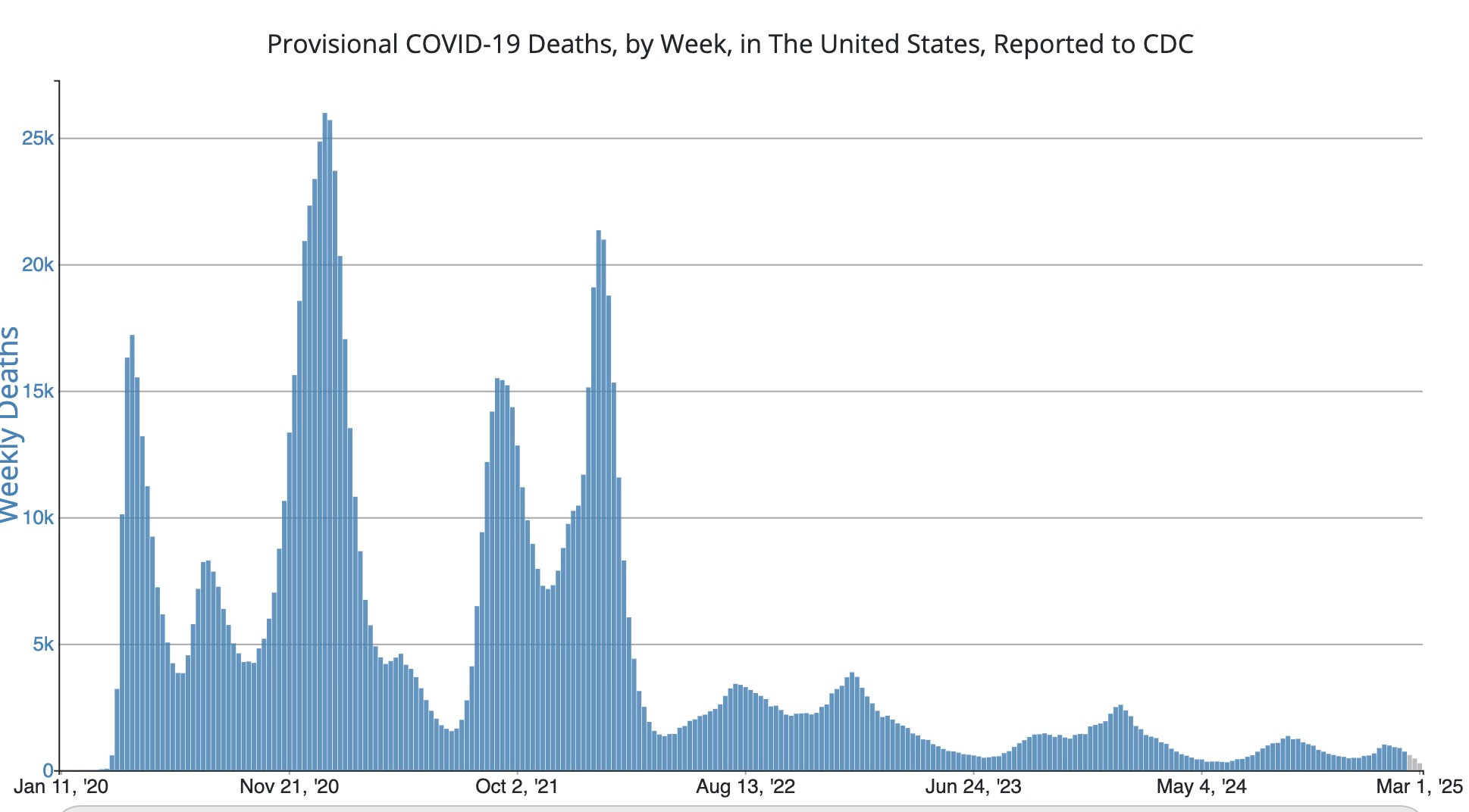 We are mostly back to normal now. Immunocompromised and hyper-cautious people still wear masks in public and working at least part of the week from home has become normalized among white collar employees. Long COVID remains a concern and so far unsolved problem, and the virus is still killing more than 100 people a month in Illinois. When I tested positive for the disease several months ago — for the second time — my physician advised me to treat it as I would a common cold, which I did. My symptoms subsided more quickly than my usual cold symptoms.