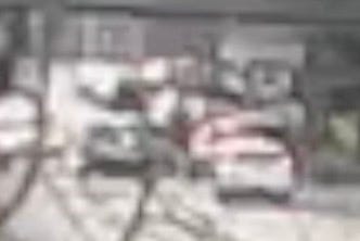Not until the 29 second mark, below, does the Chicago Police SUV enter the screen from the left, at 90 degrees from the direction Reed is traveling in.