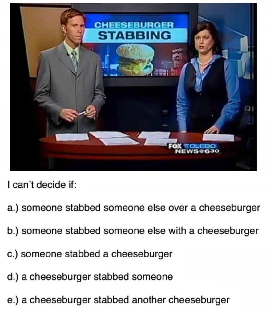 The answer to the cheeseburger question is pretty easy to find online as well as fairly obvious.