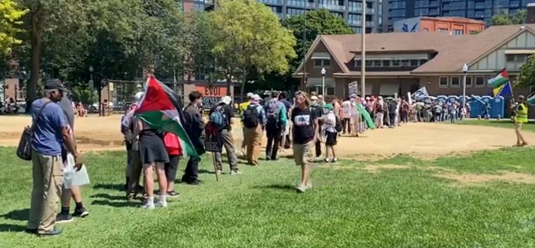 I wonder what protest organizers were thinking when projecting in court filings up to 25,000 marchers for Monday’s march near the Democratic National Convention at the United Center. Other news stories had them touting as many as 40,000 attendees.