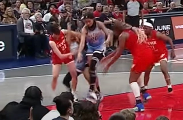 William Watts — You missed Clark’s earlier elbow to Carter’s face, and you didn’t mention that she was clearly flopping when Carter bumped her. Clark wasn’t hurt in any way. Fouls like that happen a lot in the NBA, and many are not called because people bump right back instead of flop. In 2021, Nikola Jokić took Markieff Morris of the Miami Heat out for months with a blindside hit off the ball. In March, DeMar DeRozan of the Bulls crashed into Jalen Green of the Houston Rockets because he was upset about a noncall. A newbie casual like you thinks a hard foul is an assault. It was one play, move on.