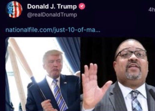 Earlier this year, Trump he posted this image of himself holding a baseball bat near a photo of the head of New York City District Attorney Alvin Bragg: