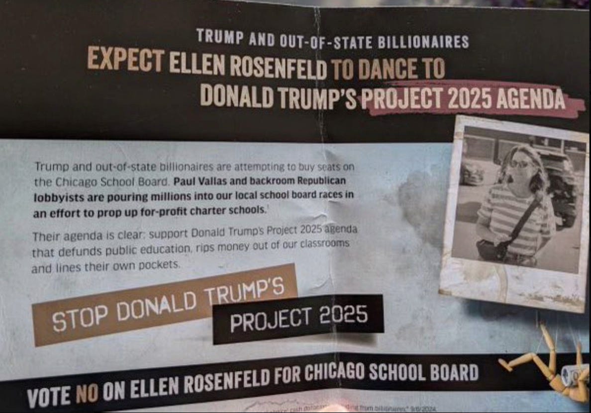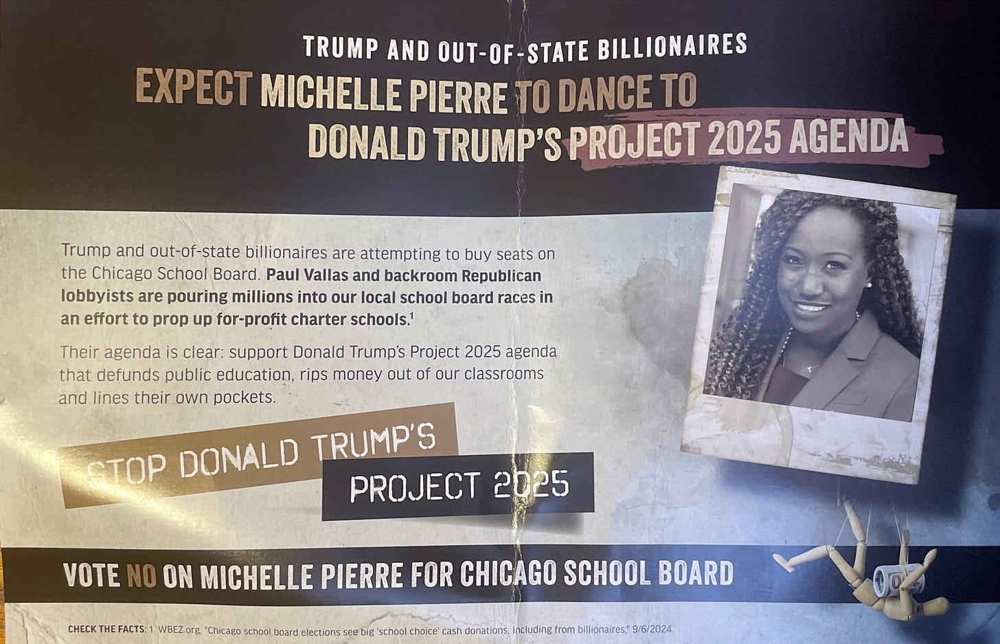 Forces aligned with the the Chicago Teachers Union have been sending around mailers like these attacking candidates whom the union has not endorsed: